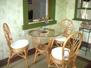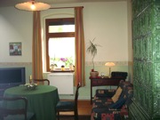 Die Ferienwohnung Felicitas besteht aus Wohnzimmer, Schlafzimmer, Lese-und Arbeitszimmer, Veranda, Küche, Bad und Flur.